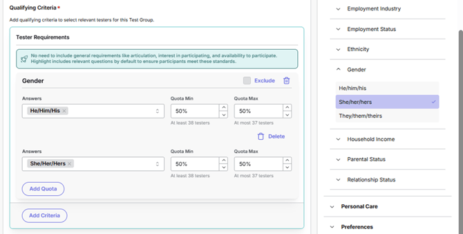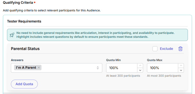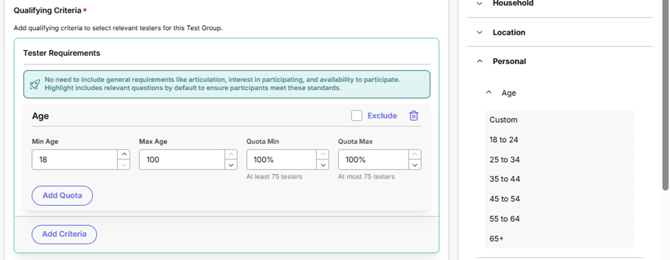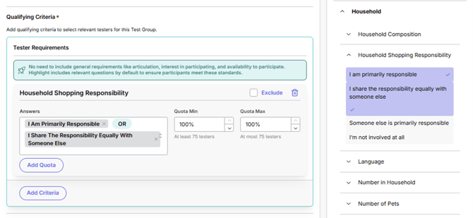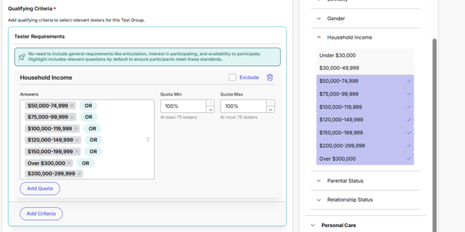 Use Qualifying Criteria to specify the consumers needed for your research. This is where Highlight's "Qualifying Criteria" comes into play.