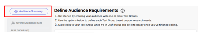 - After all audience groups have been added, click “Audience Summary” on the left side to review your audience set up.
