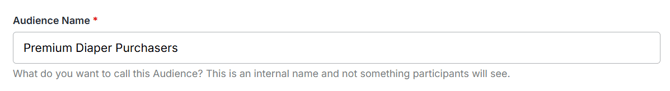 - Give your audience group a name. We will start with the 70% who are currently purchasing mainstream diapers.