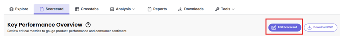 - Start from Scratch: Opens the scorecard editor so you can manually select specific questions and metrics that align with your research objectives. (More details on Customizing Your Scorecard)