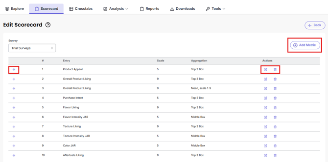 - View Suggested Metrics based on the question type (e.g., Top 2 Box for 5-point scales)